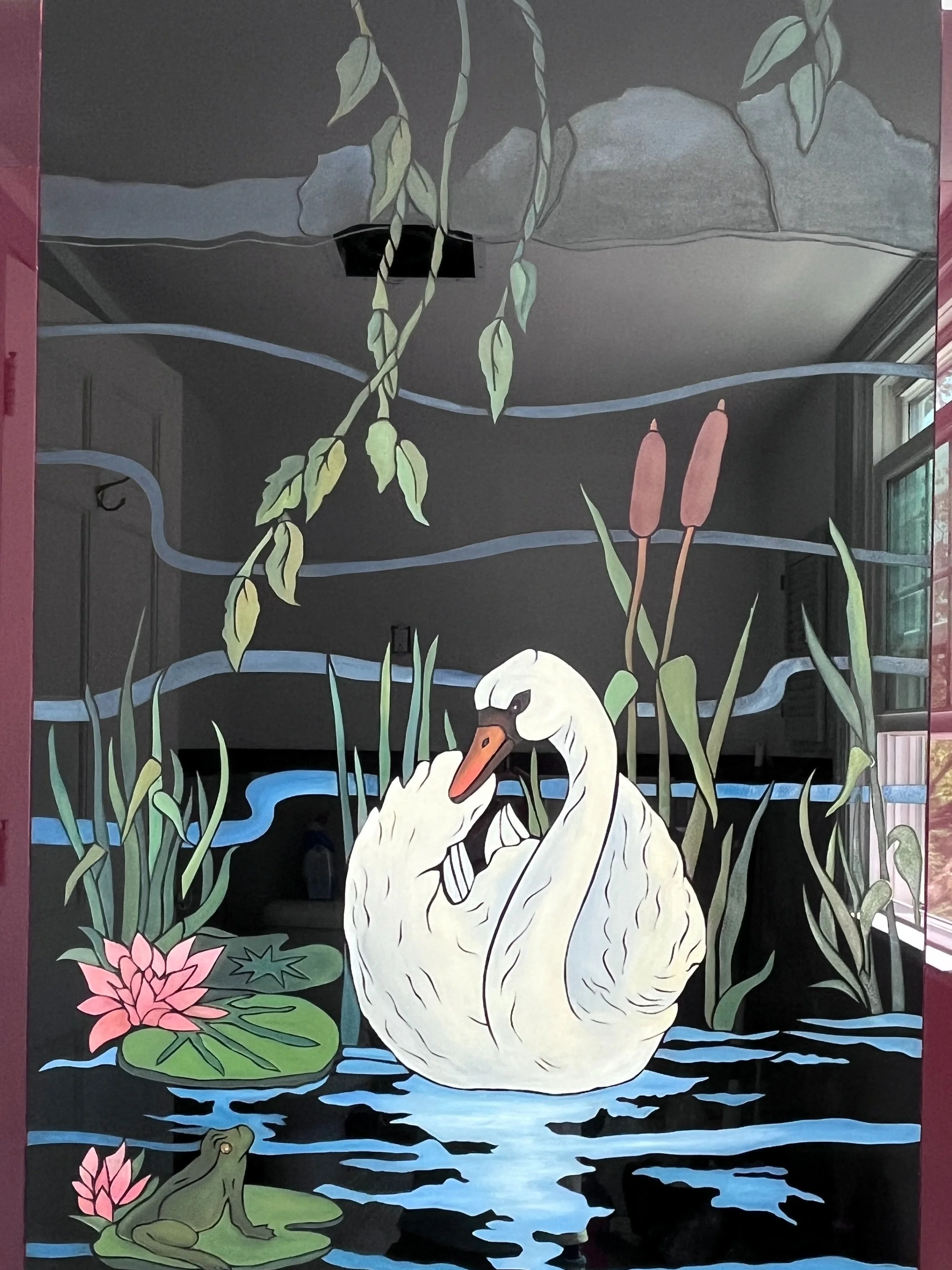 Paintings Drawings Functional and Mixed Media Art Commissions Vitrolite Swan Carved Elephant Godard Martini Lady in Red Vietnamese Lion Water Puppet