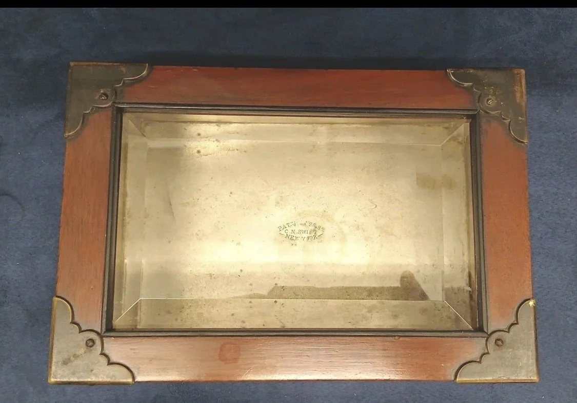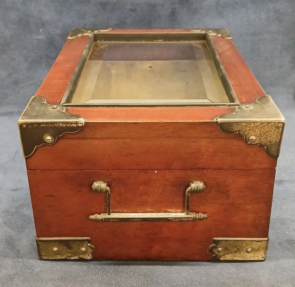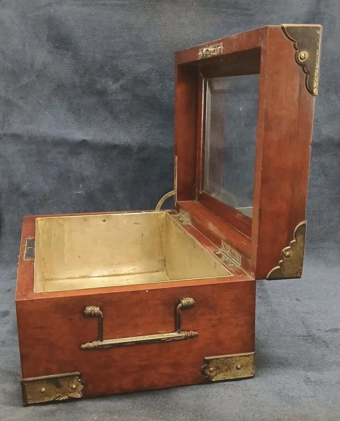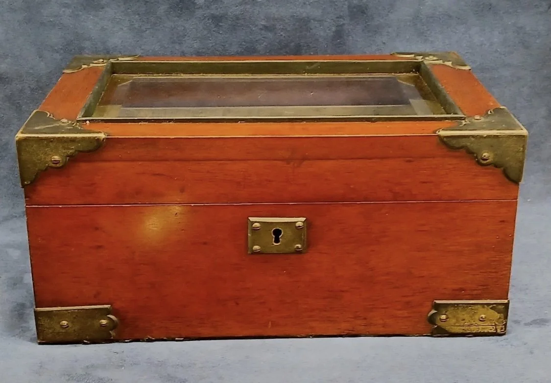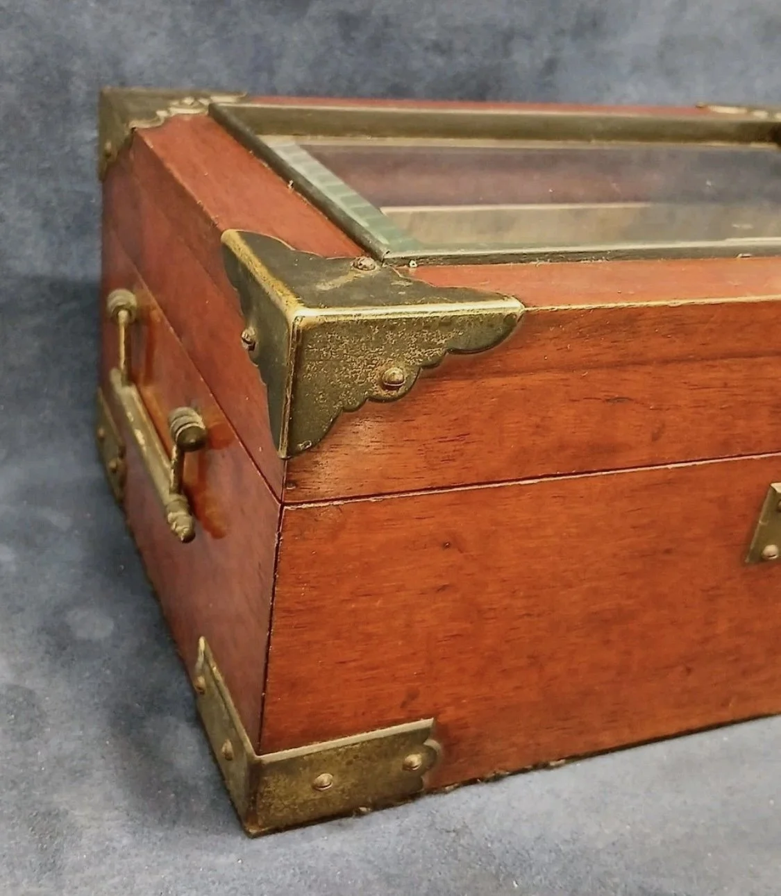Very dark finish with red Mahogany highlights, straight grain in the smooth carved area’s.