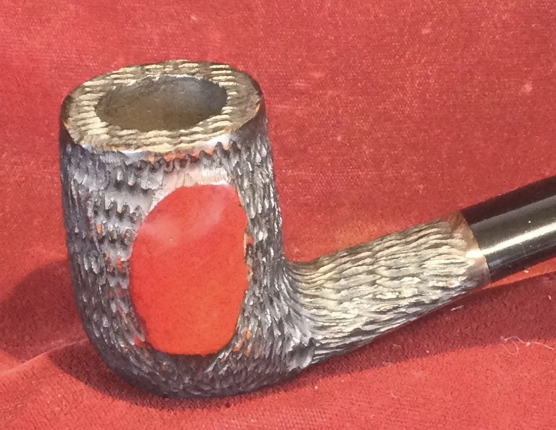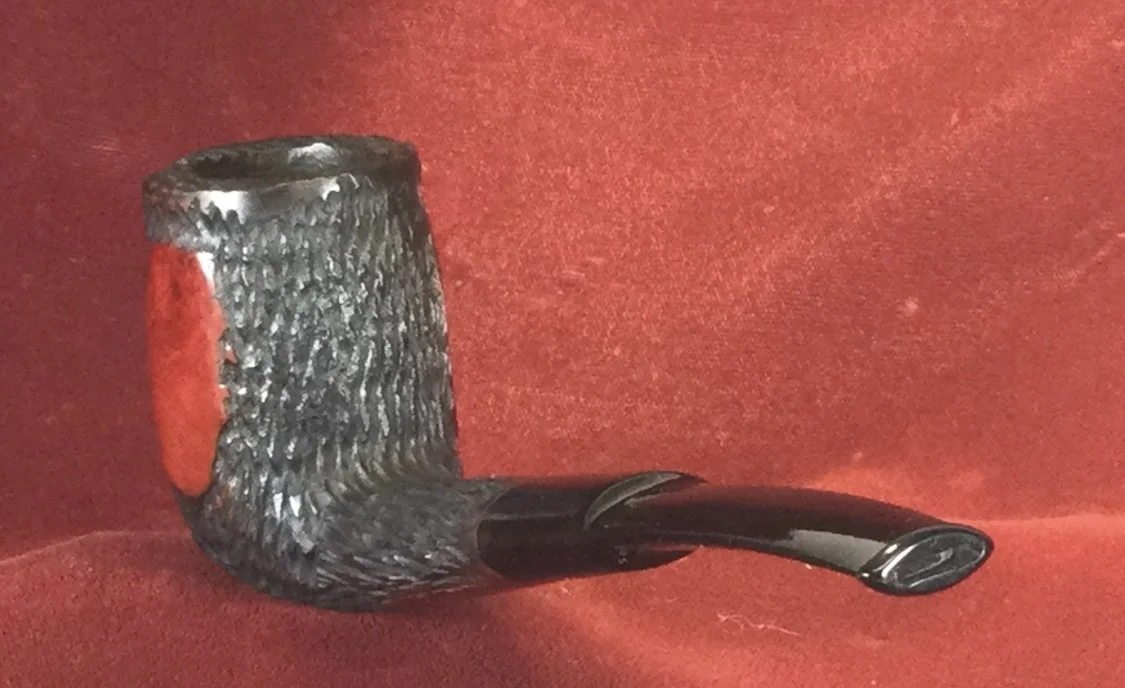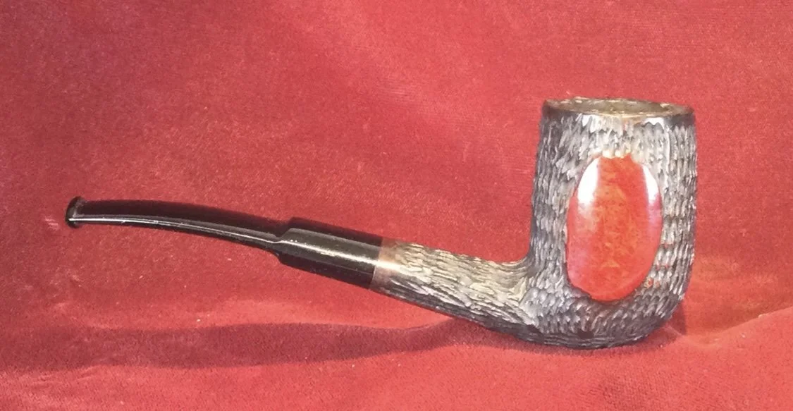 New vintage stock (NOS) Amacari Special tobacco pipe, carved Rustication with windows of smooth briar and excellent grain showing.