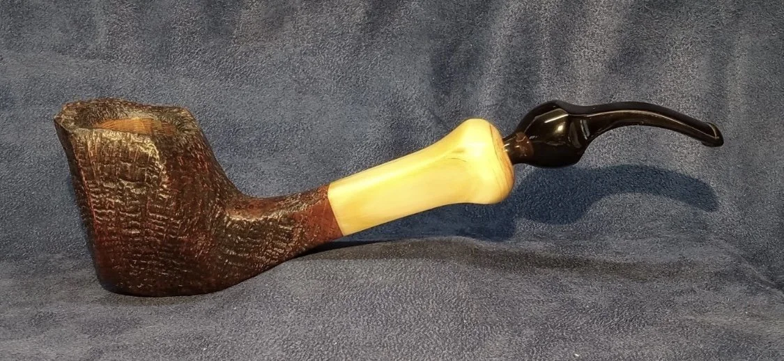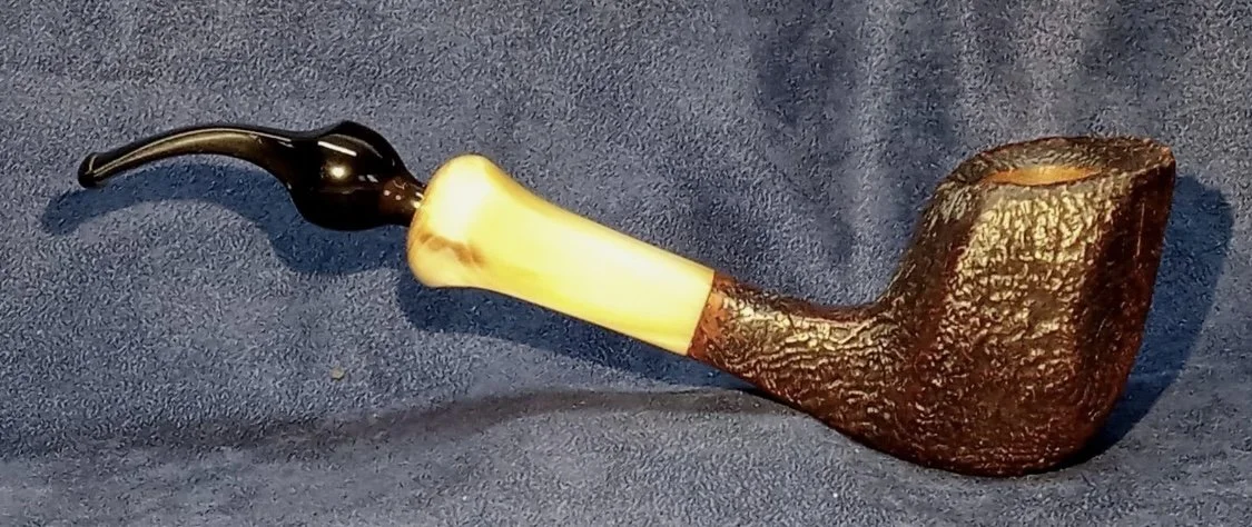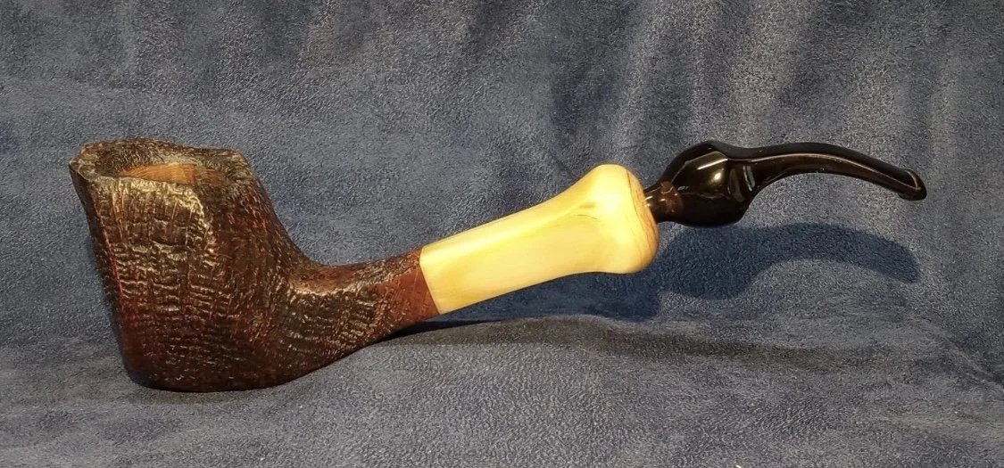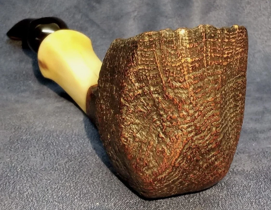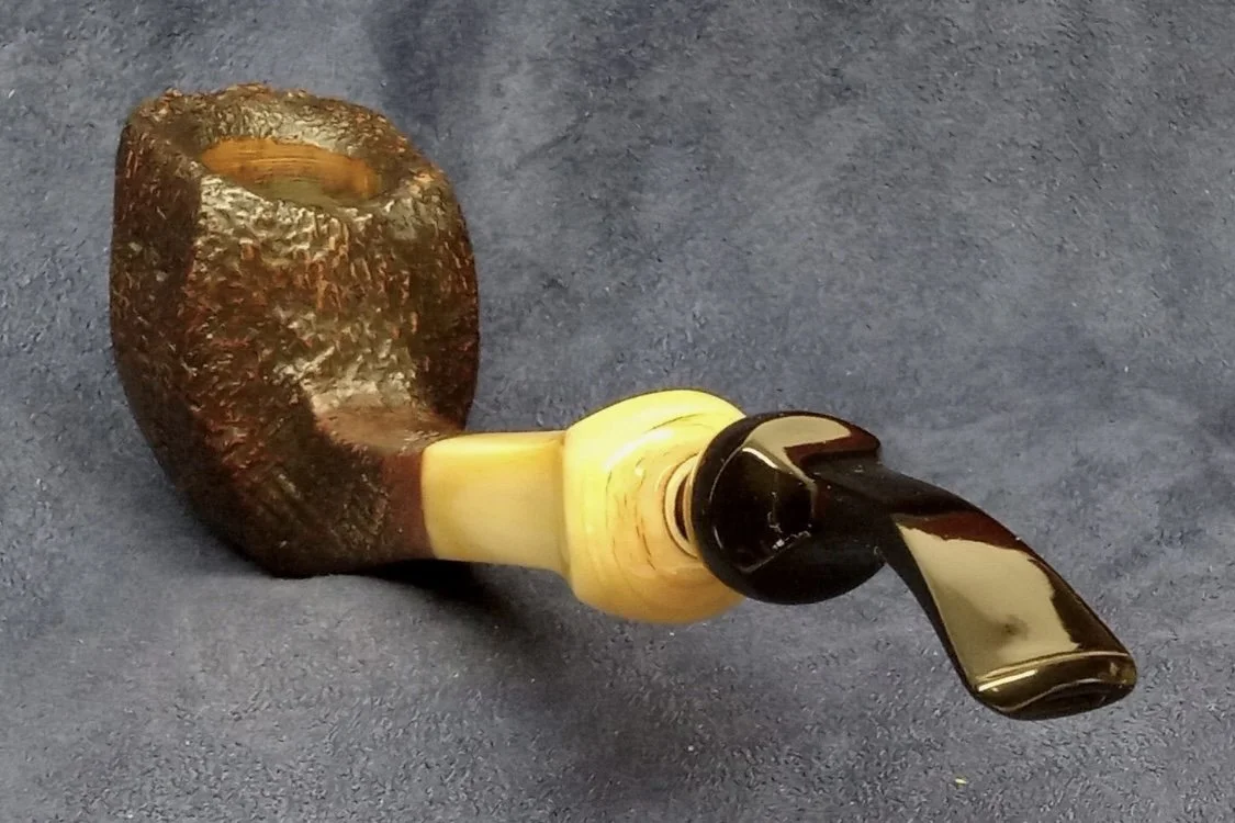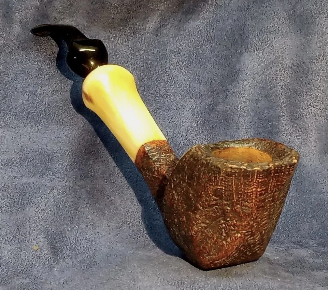Bari Wiking 7098 Blasted Bent Paneled Freehand W/Horn Ferrule Tobacco Pipe Dnmrk