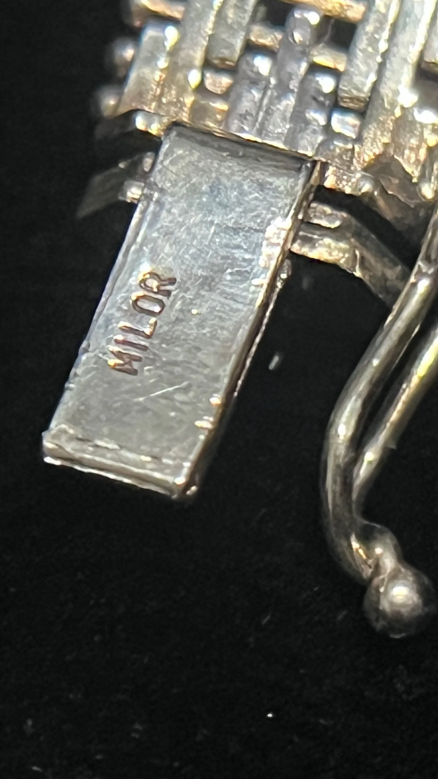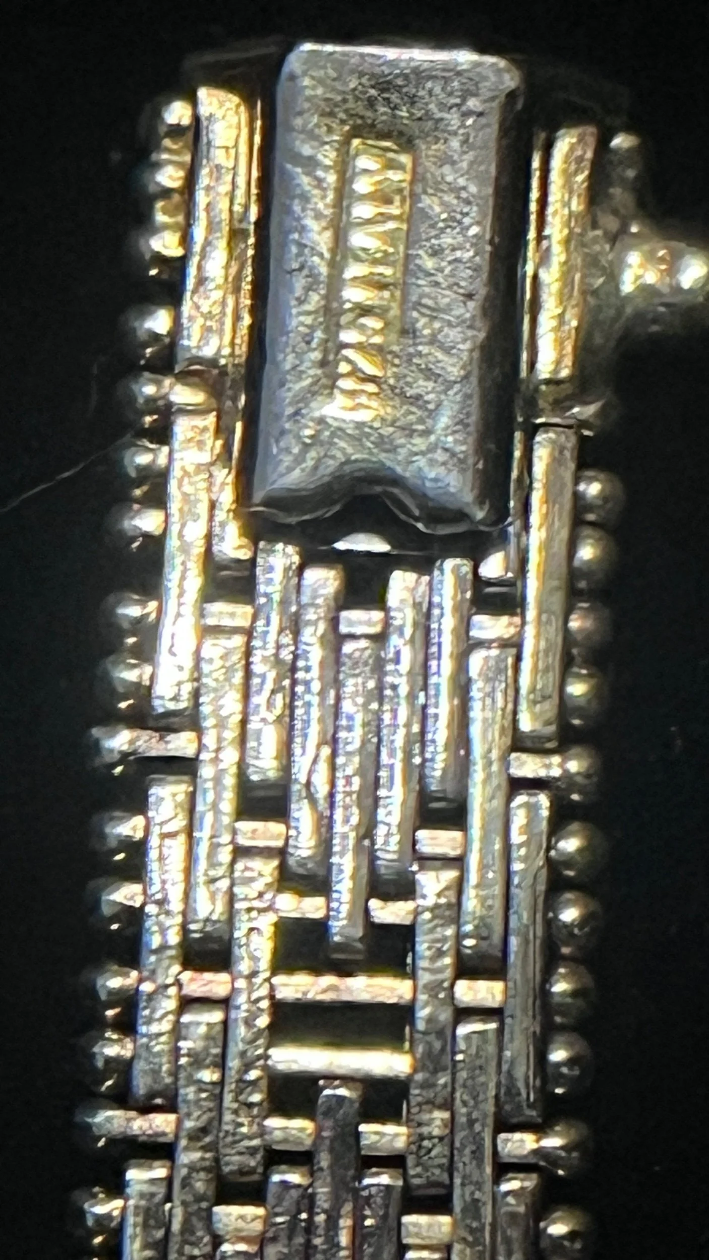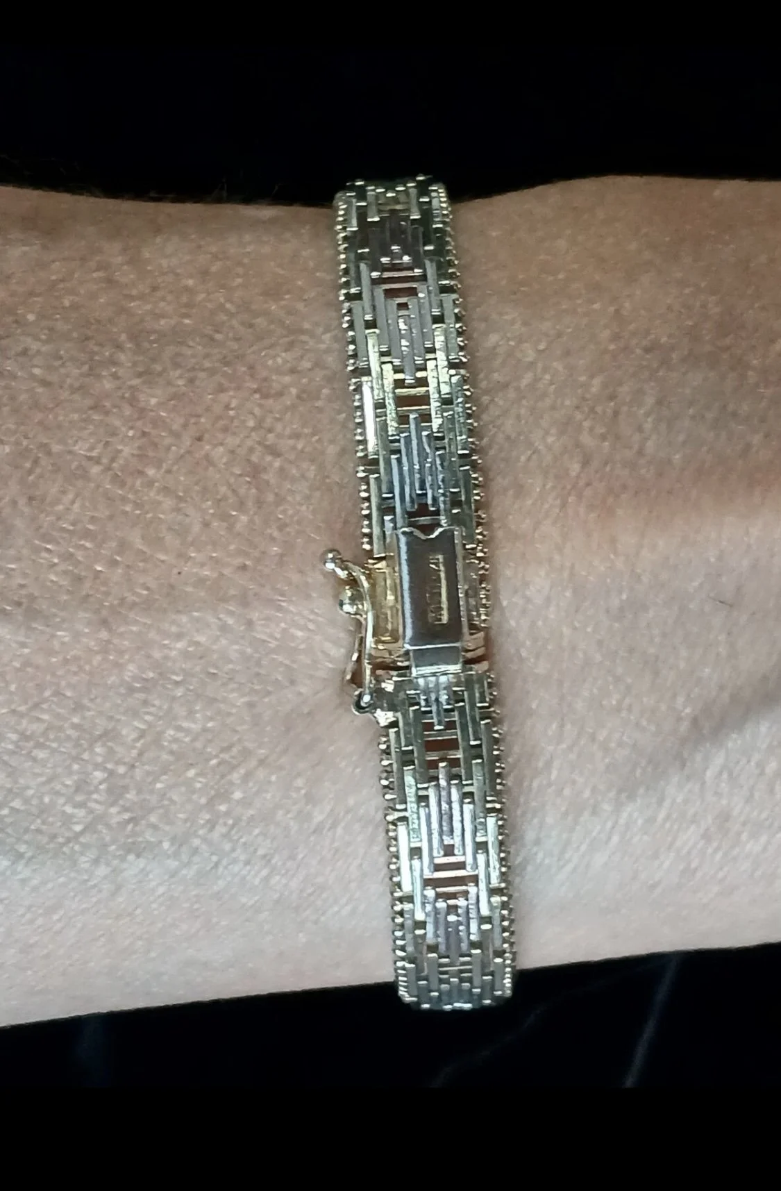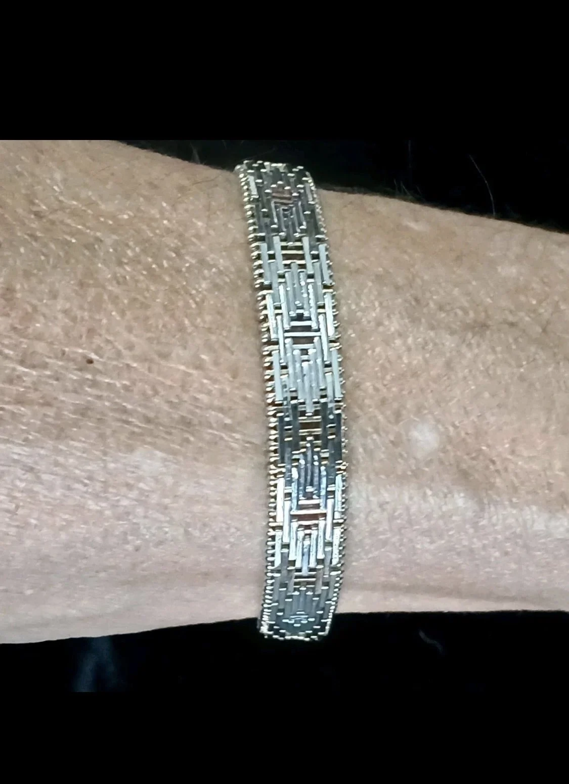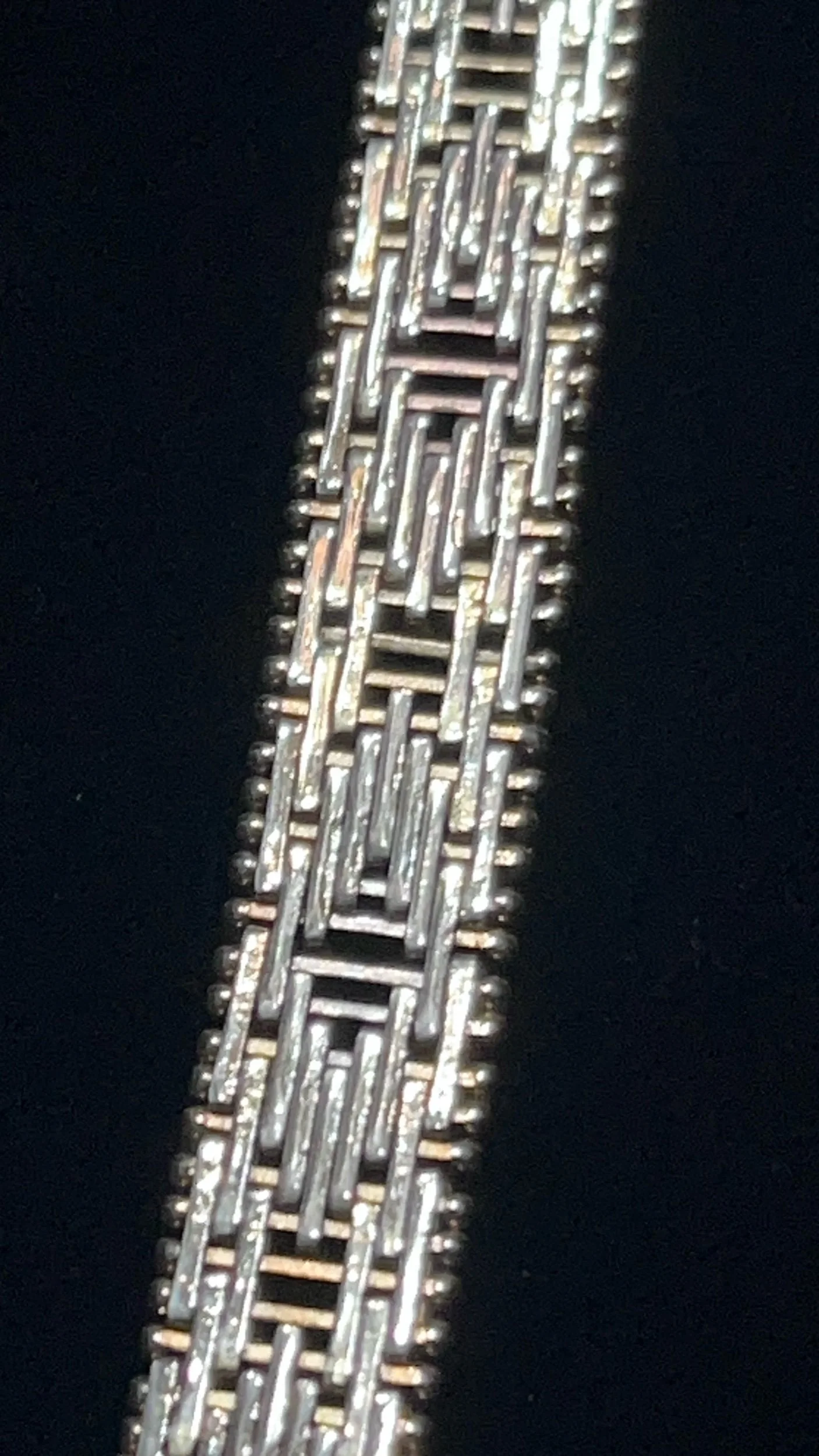 Gorgeous Vintage Riccio Woven Sterling Silver & Gold Filled Bracelet, the Riccio Design is a beautifully designed and meticulously hand crafted using horizontal pieces of silver and gold filled pins, holding together sterling silver pieces running in the opposite direction.