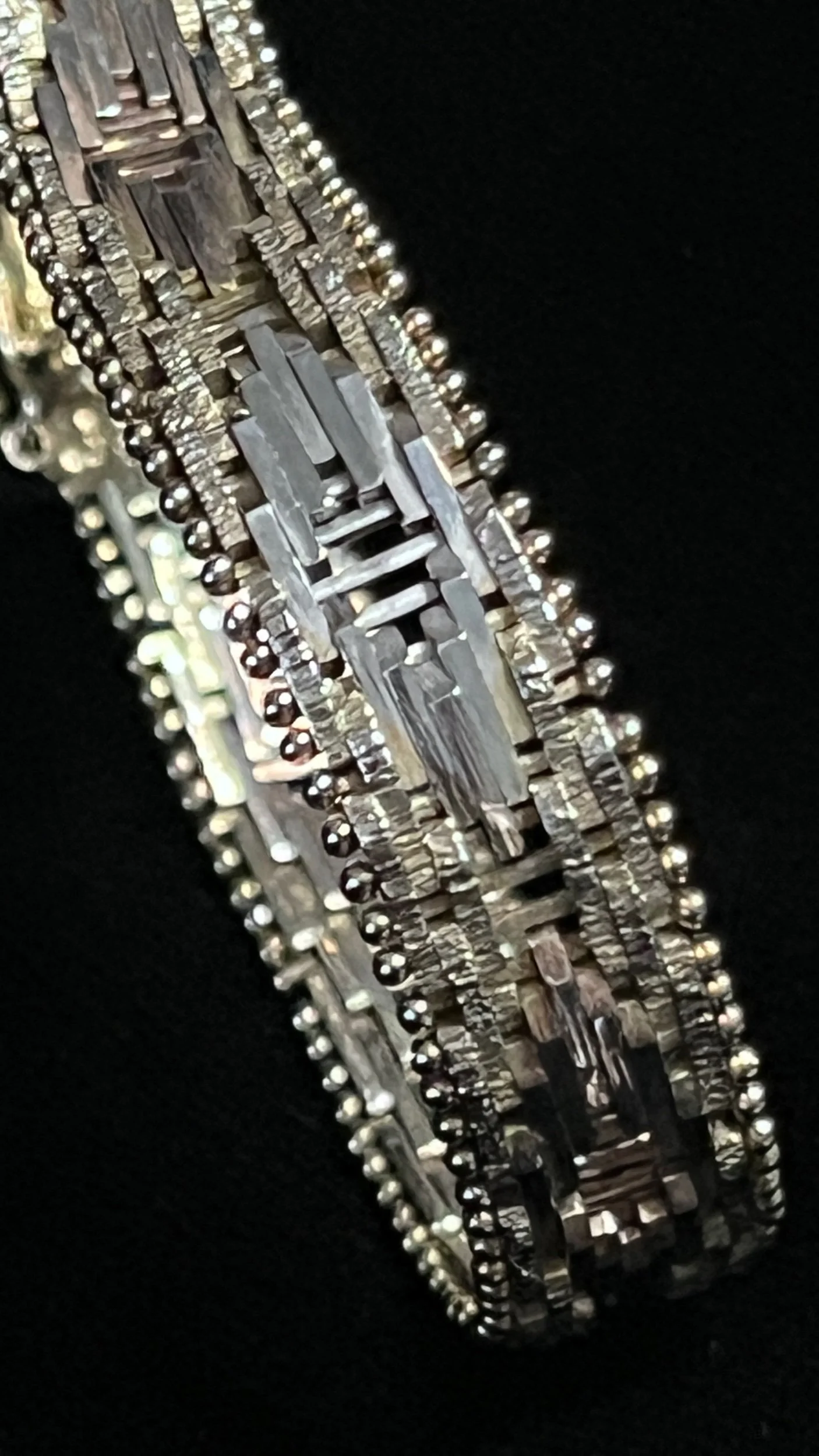 Both smooth and textured silver that contrast and catch the light in a beautiful way.