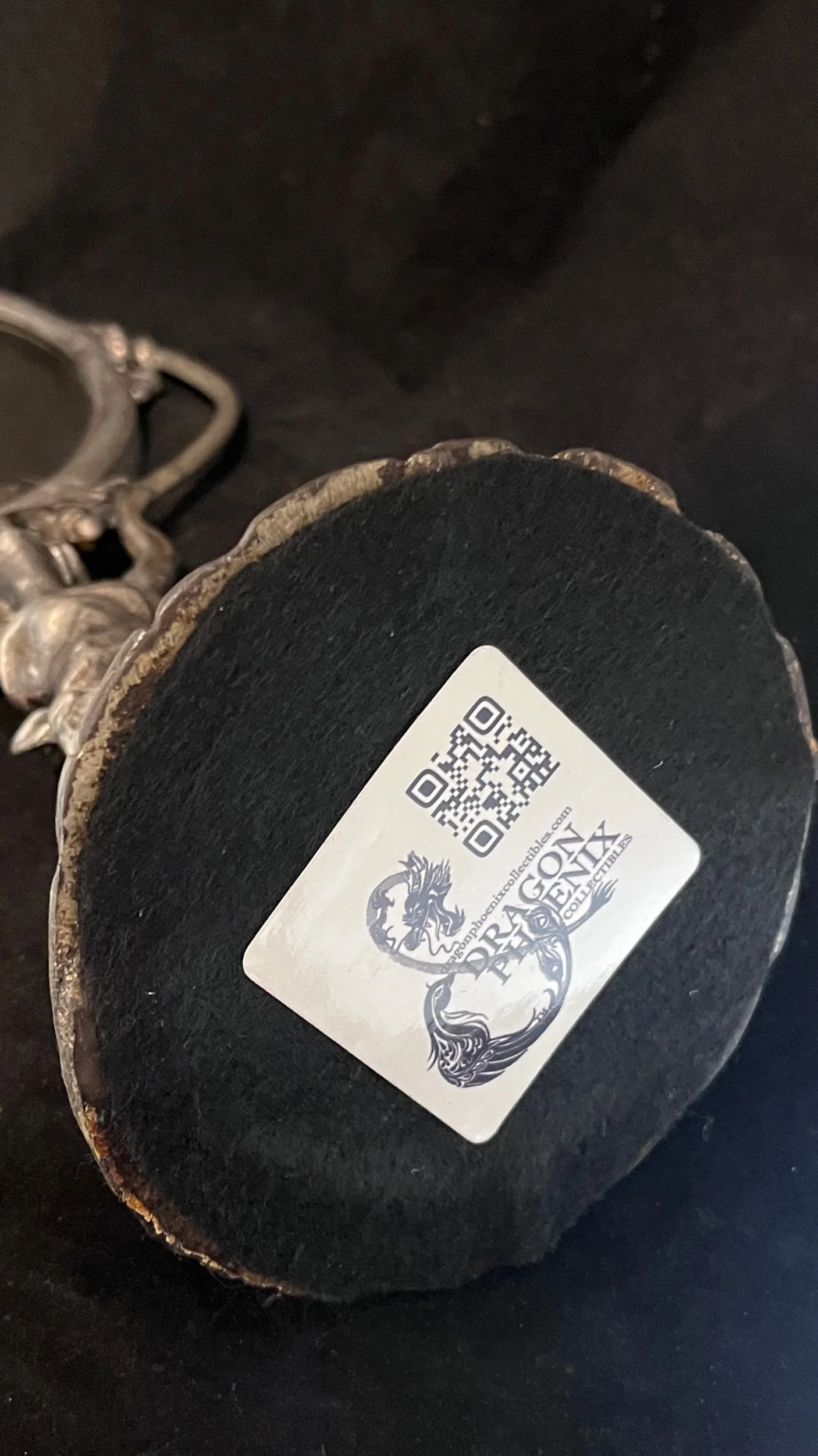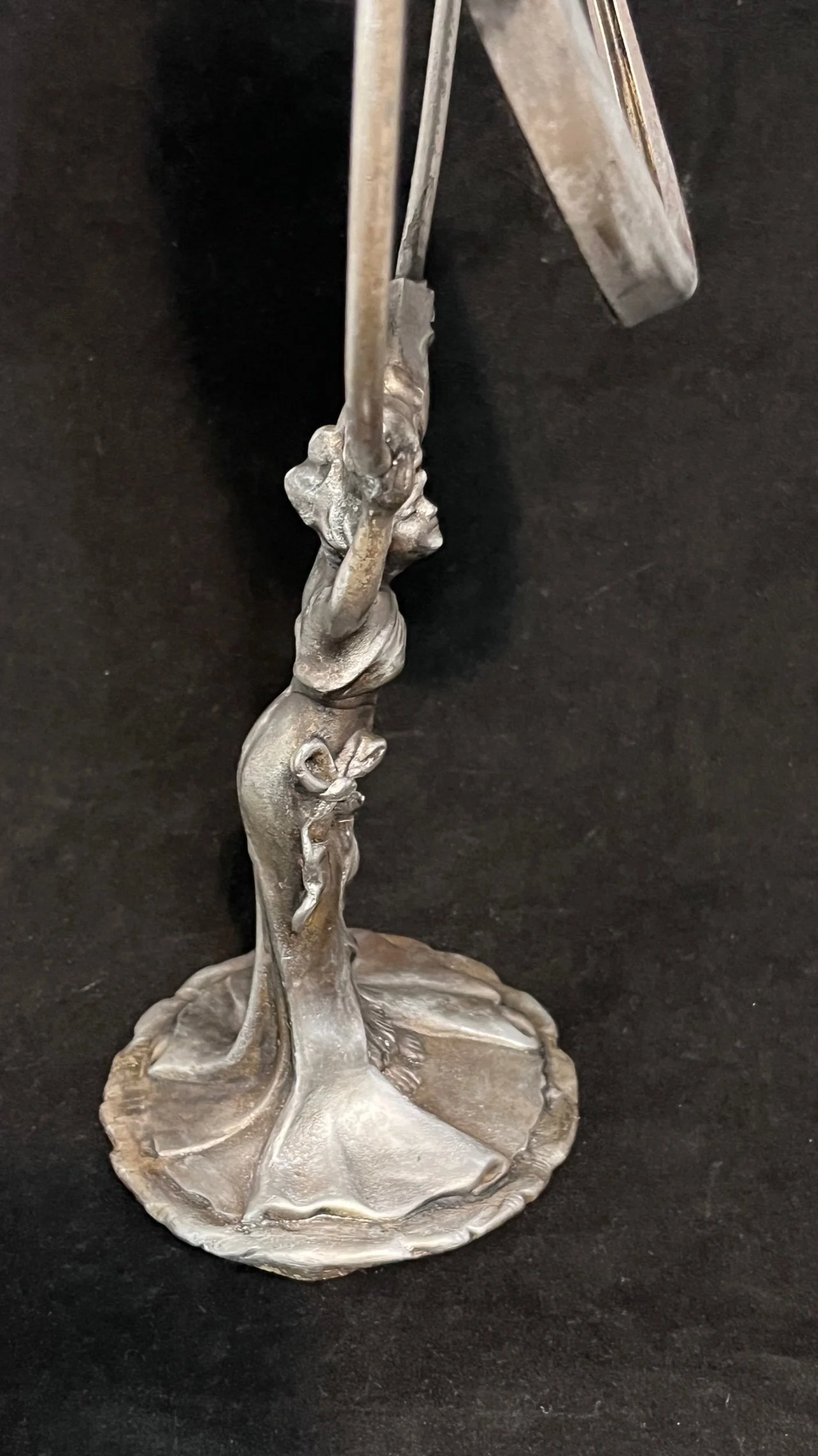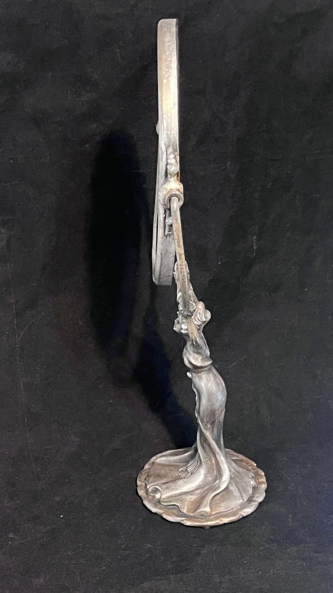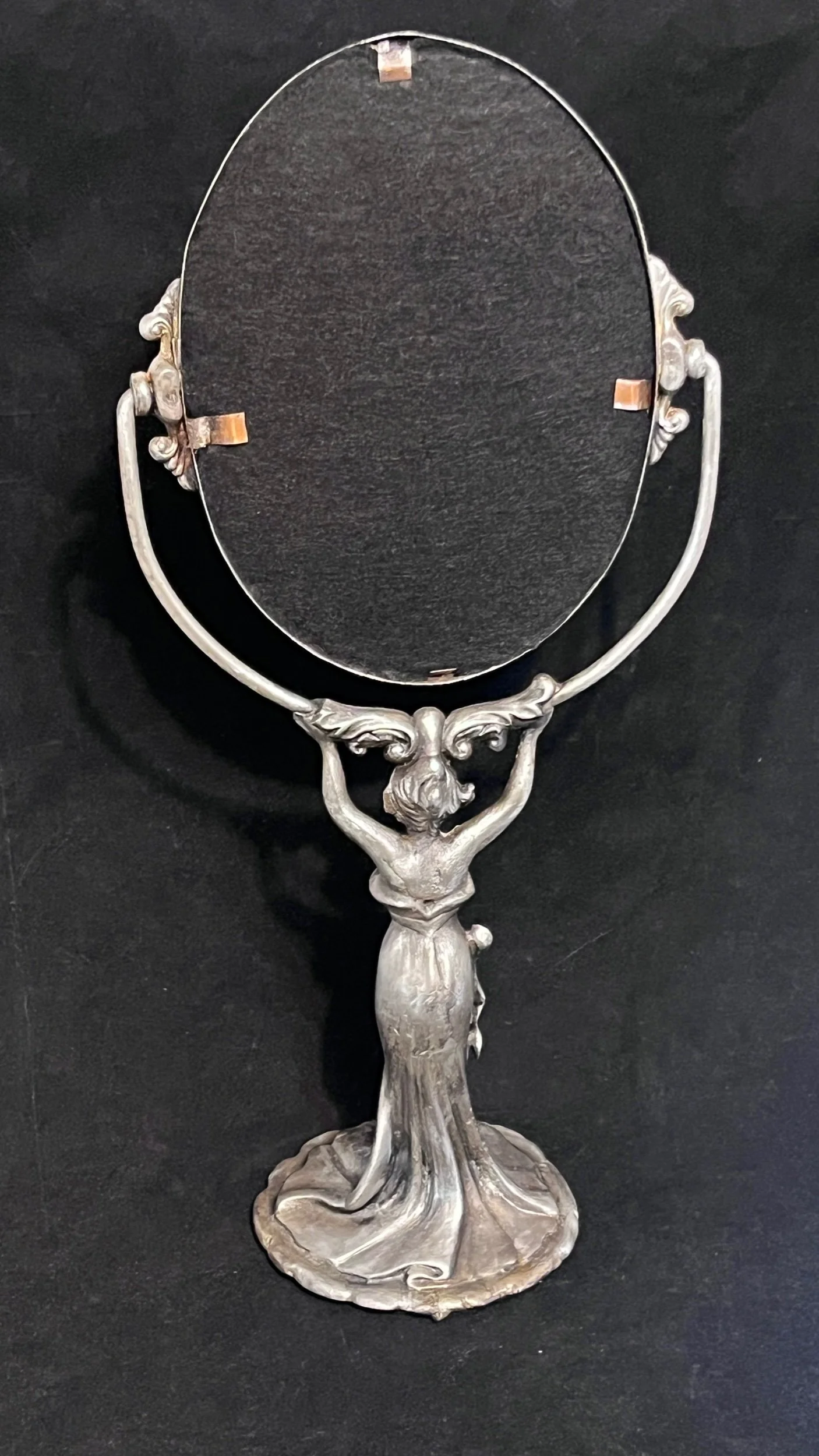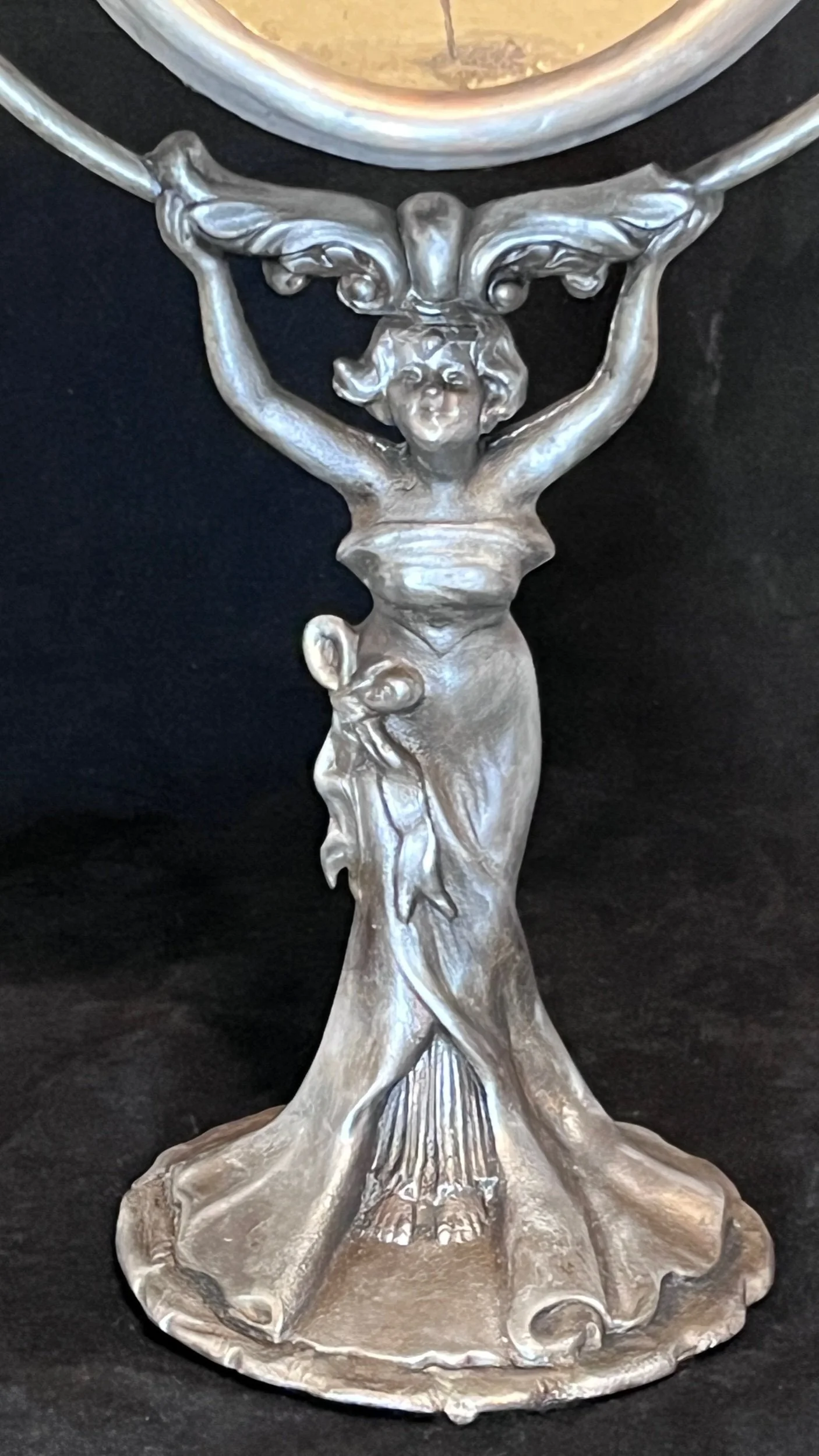 Beautiful Cast Iron Vintage Art Nouveau Woman Vanity Table Mirror with naturally distressed mirror due to age and use. New felt backing and base.
