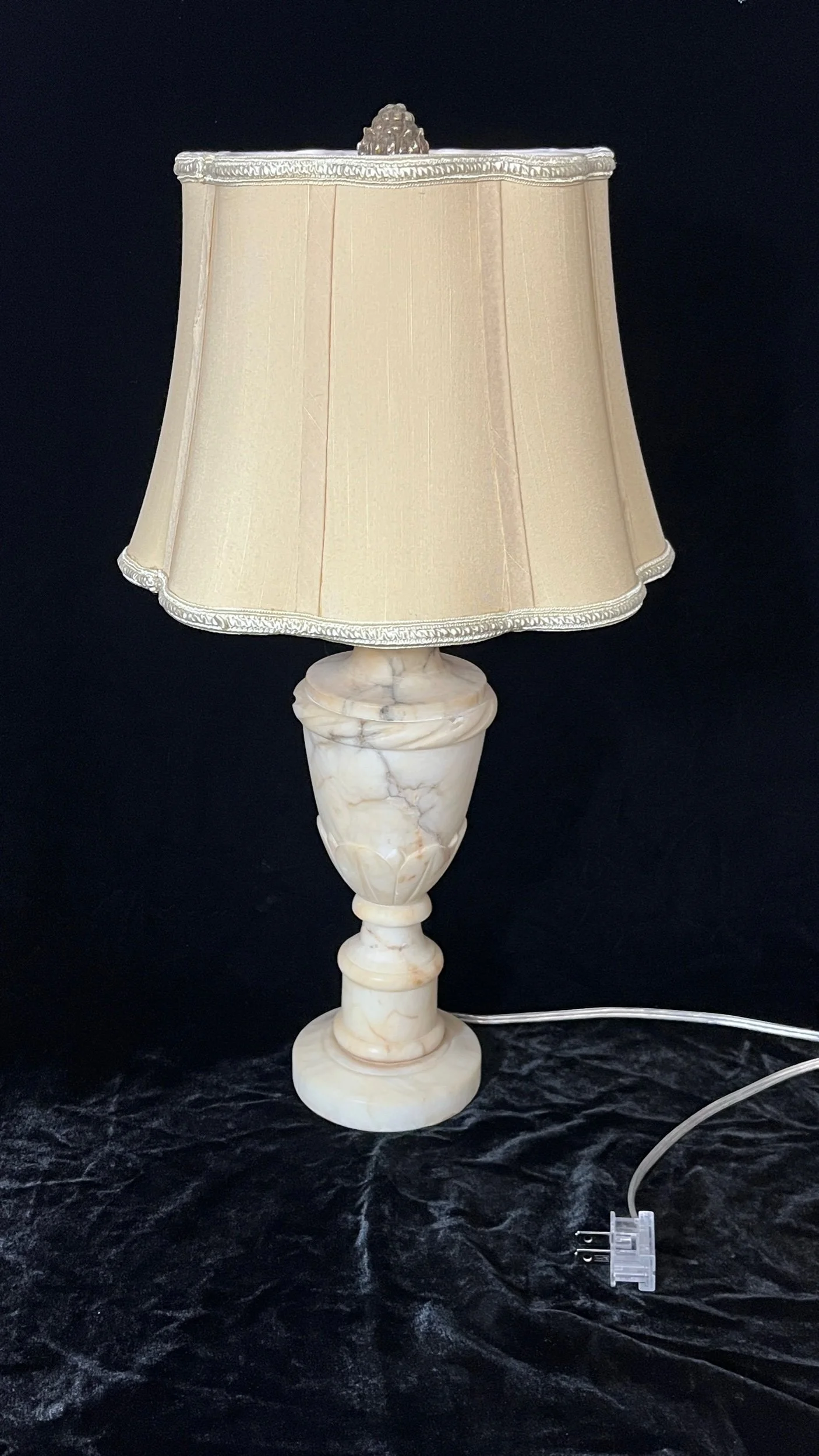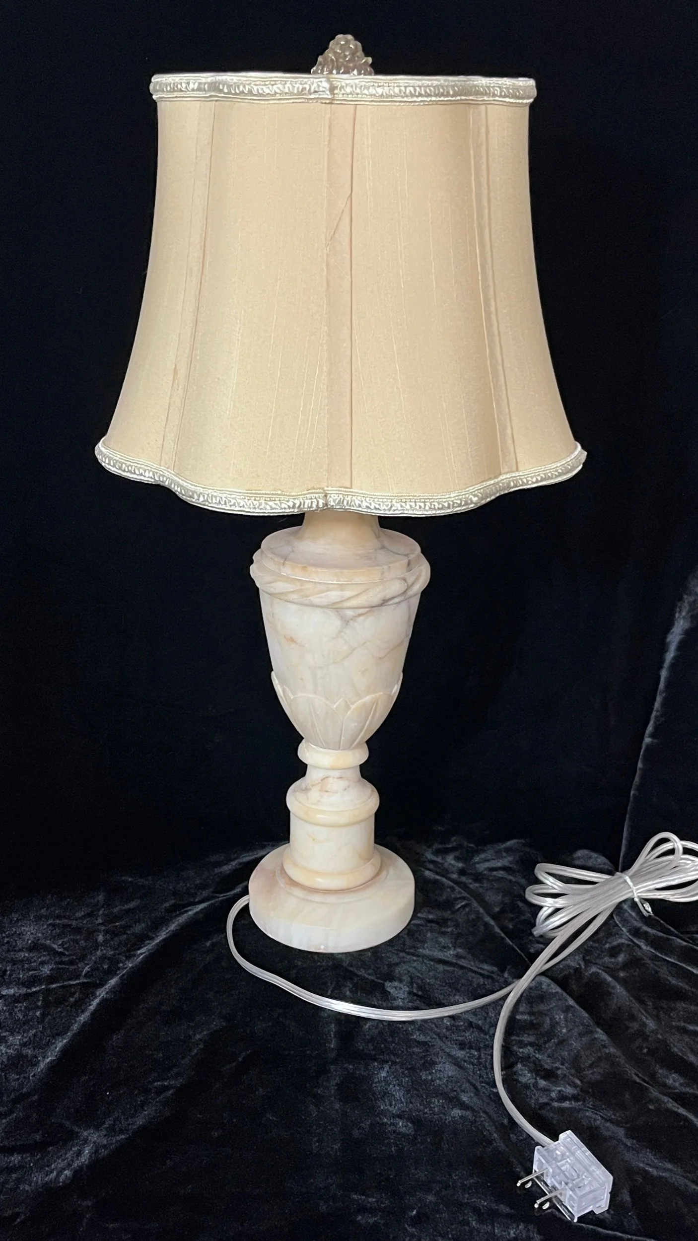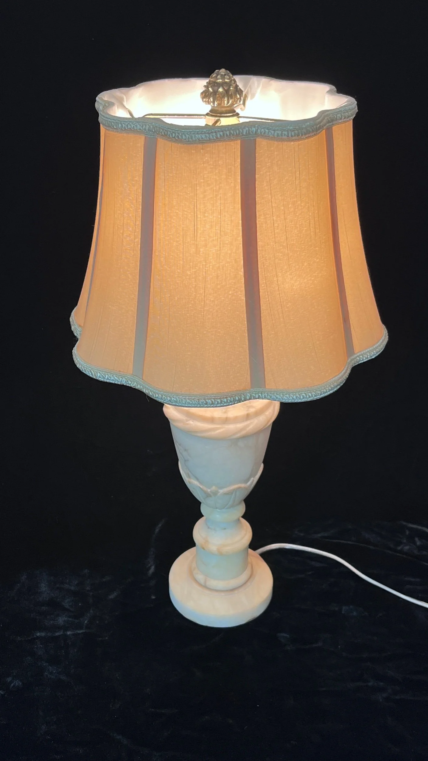 Gorgeous vintage hand carved alabaster boudoir/table/desk lamp w/shade